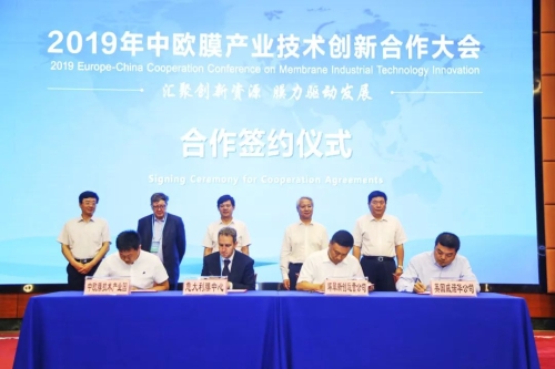 会上,举行了中欧水处理及膜技术创新产业园开园仪式及8个合作协议签约仪式。创新产业园由威海市政府、中国膜工业协会、欧洲膜学会、哈尔滨工业大学共同打造,即将有12家膜材料制备及应用企业进驻。