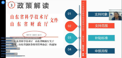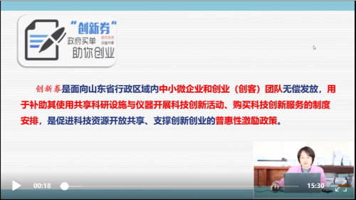 为减少疫情防控期间人员流动,控制疫情蔓延,省科技厅采取在线方式提报创新券兑付电子版材料、盖章文件扫描件,充分利用省大型科学仪器设备协作共用网,持续开展创新券审核、仪器入网审核等工作,及时反馈审核意见。通过网上办公、在线宣讲等多种形式,解答中小微企业在政策落实中的有关问题,确保疫情防控期间管理服务工作“不断档”。采取录播、直播相结合的方式,举办“科技赋能——山东科技政策云讲堂”系列线上公益培训活动,邀请省科技厅有关处室、单位负责同志以及知名服务机构实战专家精准解读我省促进科技型中小企业创新发展的政策措施。3月24日省科技服务发展推进中心相关负责同志讲解了《山东省创新券使用管理办法》,从创新券政策制定依据、组织与管理、支持对象和补助标准、创新券使用与兑付程序、创新券监督与管理等五个方面进行了深度解读,将观众问题整理成创想笔记解答发布,获得了4700多人的在线关注。