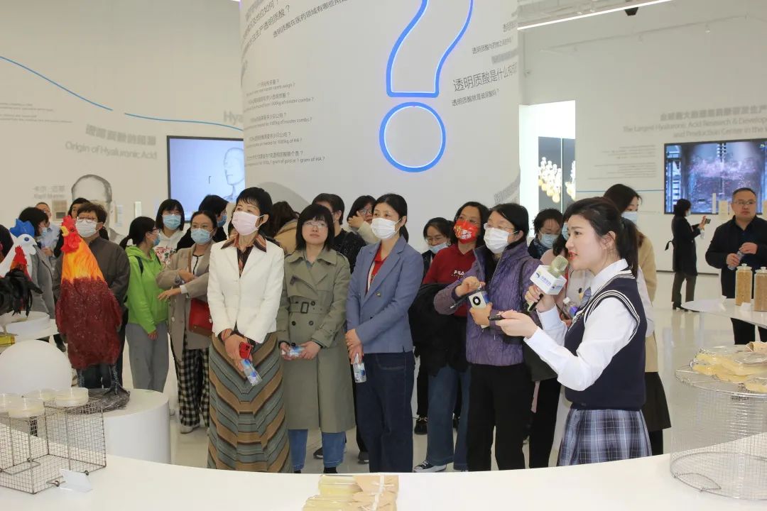 在讲解员的带领下,大家首先参观了华熙生物世界透明质酸博物馆,通过文献资料、科普视频、仿真模拟等多种形式了解透明质酸从发现、应用到未来前景的多方面知识,感受到科技对生产力的巨大推动作用。