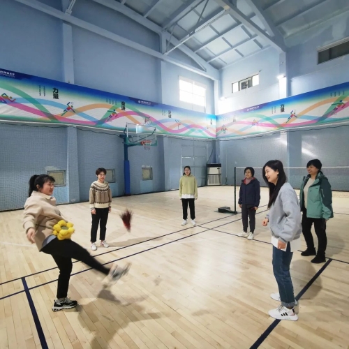 主题活动分为两个阶段:第一阶段,中心女干部职工分组进行团队踢毽子比赛,整个比赛欢快热闹,既有个人的单独“炫技”,也有团队的默契配合,小小的毽子不断上下翻飞,现场的女职工不时爆发出阵阵笑声。