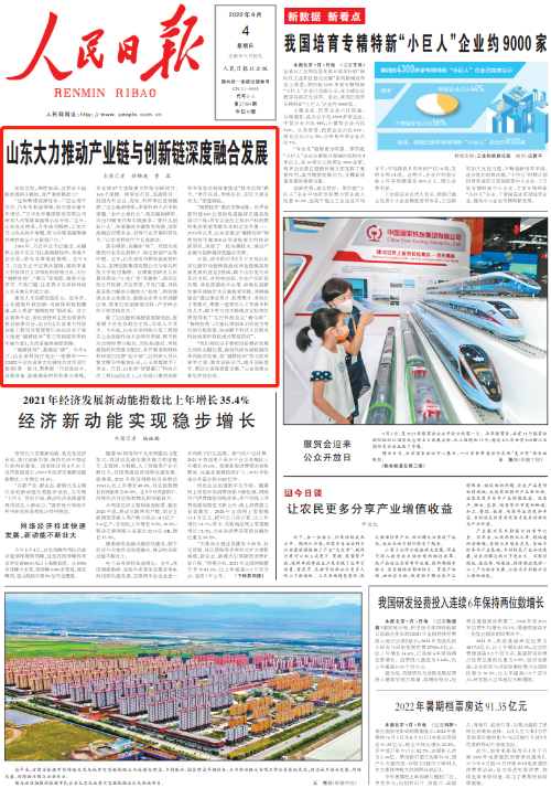人民日报头版头条:山东大力推动产业链与创新链深度融合发展