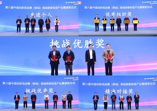 第八届中国创新挑战赛(聊城)高端装备制造产业赛自7月份启动以来,挖掘并发布110项企业技术创新需求,共征集到52项解决方案,促成技术合作22项,有效激发了企业技术创新主体的活力。本次大赛大连工业大学温保岗团队等3个团队获挑战优胜奖,北京交通大学樊文刚团队等6个团队获挑战优秀奖,聊城大学赵栋杰团队等5个团队获精准对接奖,聊城产业技术研究院等6家单位获优秀组织奖,聊城大学融合发展处陶梦山等19人获先进个人荣誉称号。同时,通过大赛精准对接,大连工业大学温保岗团队、北京交通大学樊文刚团队等8个高校专家团队与山东凯美瑞轴承科技有限公司、临清市新森机械有限公司等8家优质企业举行了现场签约。