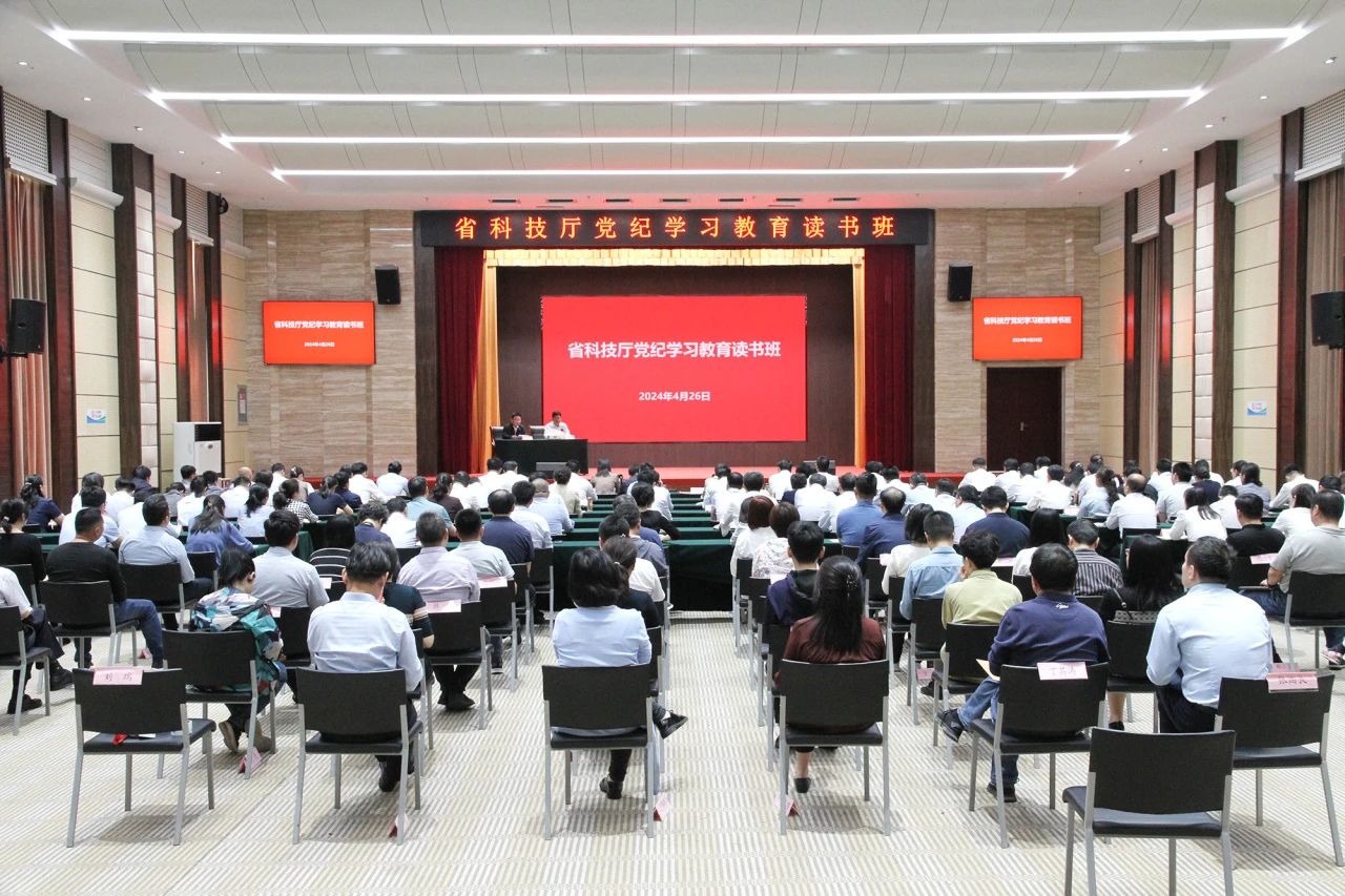 4月26日,省科技厅举办党纪学习教育读书班,深入学习贯彻习近平总书记关于党纪学习教育的重要讲话、重要指示精神,贯彻落实党中央决策部署和省委工作安排,认真学习新修订的《中国共产党纪律处分条例》,推动党纪学习教育扎实深入开展。厅党组书记、厅长孙海生同志主持读书班并讲话。