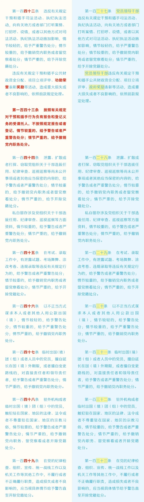 首页 >专题 >深入贯彻中央八项规定精神学习教育 《中国共产党纪律处分条例》修订条文对照表 浏览次数: 信息来源:中央纪委国家监委网站 发布时间: 2024-05-14 18:29 文字大小: 大 中 小 打印 关闭