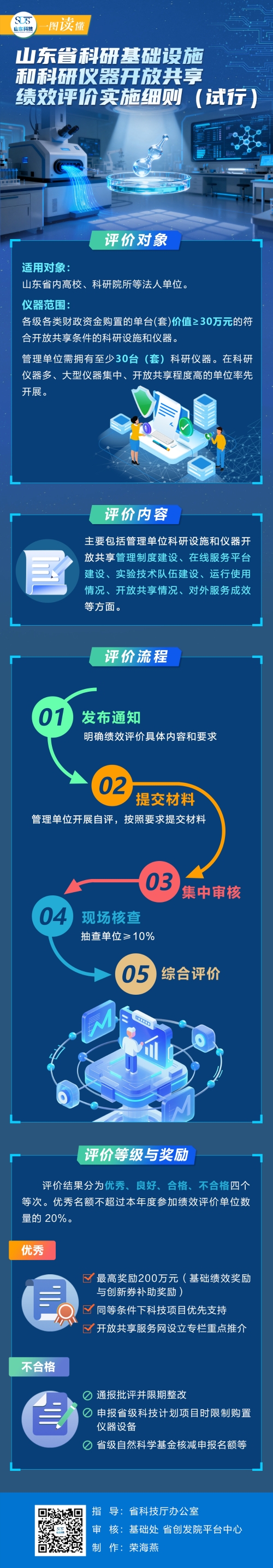 首页 >政务公开 >法规文件 >政策解读 一图读懂 | 《山东省科研基础设施和科研仪器开放共享绩效评价实施细则(试行)》 浏览次数: 信息来源:办公室 发布时间: 2025-10-16 17:59 文字大小: 大 中 小 相关政策:关于印发《山东省科研基础设施和科研仪器开放共享绩效评价实施细则(试行)》的通知 打印 关闭