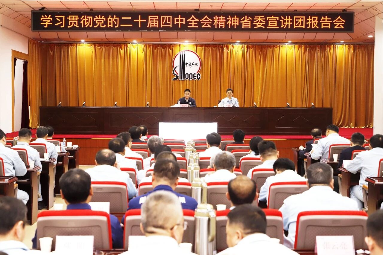 按照省委部署安排,11月21日下午,省委宣讲团成员,省科技厅党组书记、厅长孙海生到齐鲁石化宣讲党的二十届四中全会精神。中国石化集团公司总经理助理、齐鲁分公司代表、党委书记李刚主持宣讲报告会。