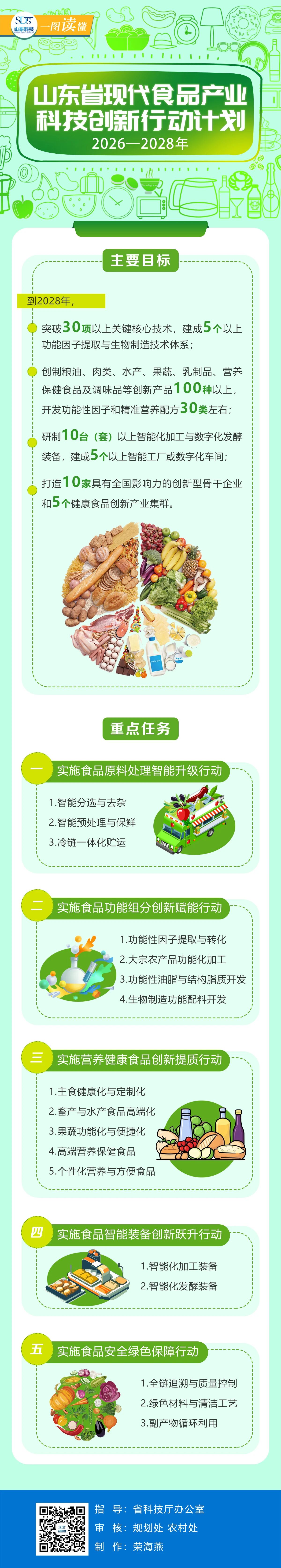 首页 >政务公开 >法规文件 >政策解读 一图读懂 | 《山东省现代食品产业科技创新行动计划(2026—2028年)》 浏览次数: 信息来源:山东科技 发布时间: 2025-11-08 13:54 文字大小: 大 中 小 相关政策:关于印发《山东省现代食品产业科技创新行动计划(2026—2028年)》的通知 打印 关闭