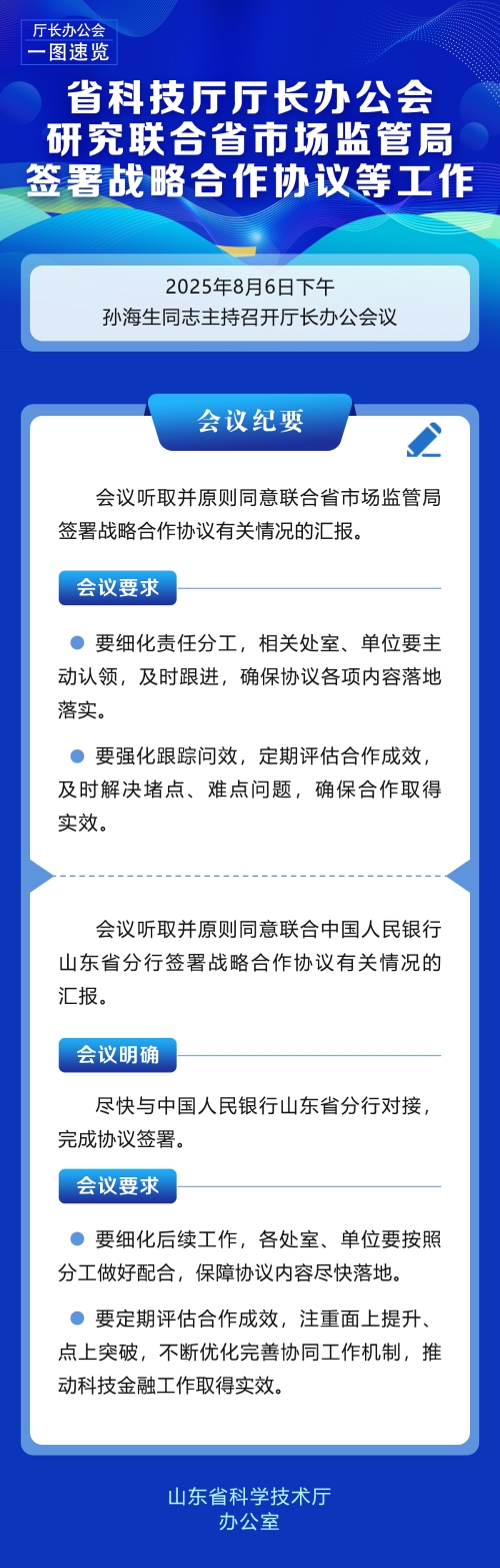 首页 >政务公开 >政府会议 >部门办公会议 会议图解 | 省科技厅厅长办公会研究联合省市场监管局签署战略合作协议等工作 浏览次数: 信息来源:办公室 发布时间: 2025-08-08 09:57 文字大小: 大 中 小 【相关信息】办公会 | 省科技厅厅长办公会研究联合省市场监管局签署战略合作协议等工作 打印 关闭