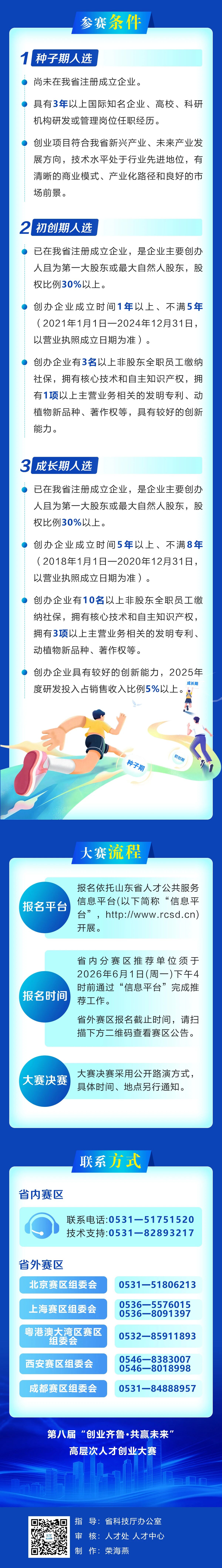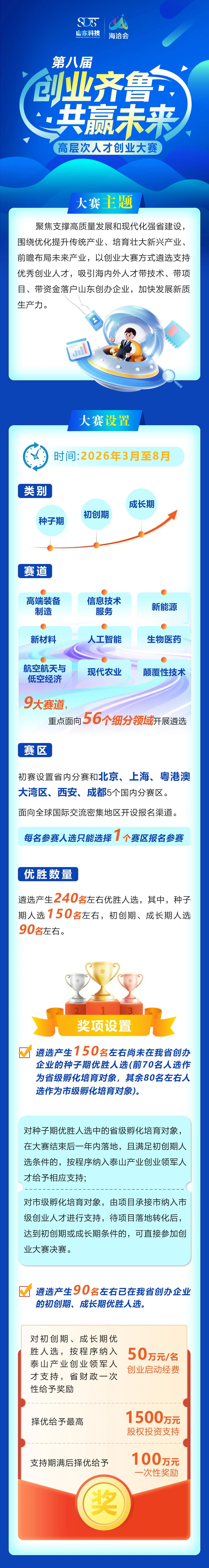 首页 >政务公开 >法规文件 >政策解读 一图读懂丨第八届“创业齐鲁·共赢未来”高层次人才创业大赛 浏览次数: 信息来源:人才处、人才中心 发布时间: 2026-03-20 17:25 文字大小: 大 中 小 有关政策:第八届“创业齐鲁·共赢未来”高层次人才创业大赛公告 打印 关闭